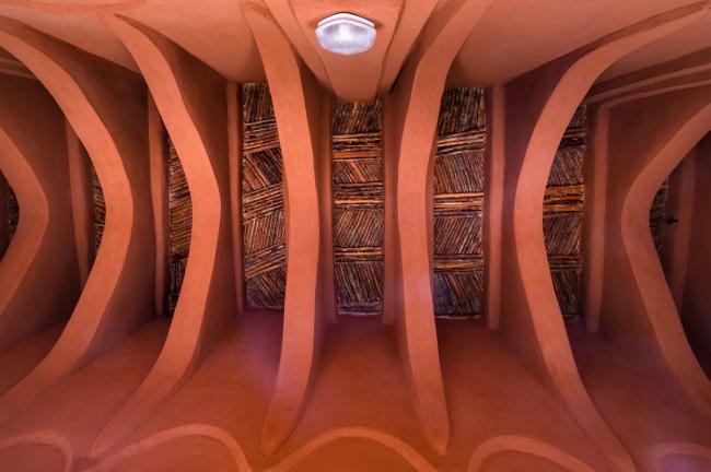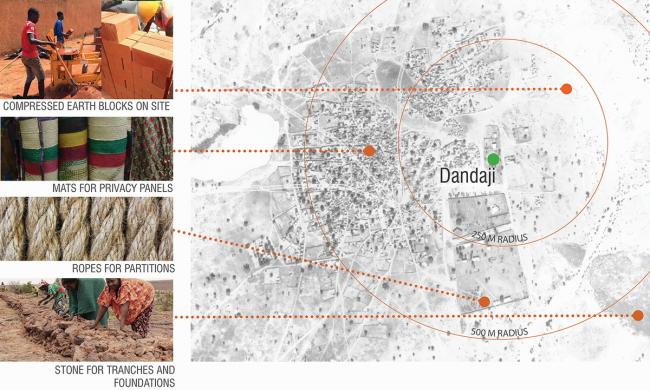 该项目的主要建筑材料是压缩土砖(CEB),由工地附近的土壤制成,具有更好的隔热性能,以降低能源消耗,同时也降低了建筑成本。