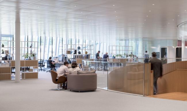 在设计过程中,3XN的核心理念——建筑塑造行为——被作为首要考虑因素。建筑的透明度和流动感旨在促进和鼓励员工之间的互动、沟通和知识共享。被强化的流线将成为工作团队之间合作和团结的催化剂。结构设计旨在尽可能减少对内部空间的限制:4个服务核心筒和14根支柱支撑整个建筑物的结构。设备和电气系统的系统化设计使得灵活的工作环境成为可能,致力于适应未来战略和机构变革的高度移动化工作团队。办公室可以轻松地在开放空间中腾挪,故而工作空间可以根据国际奥委会工作人员不断变化的需求轻松修改,以此鼓励内部协作。