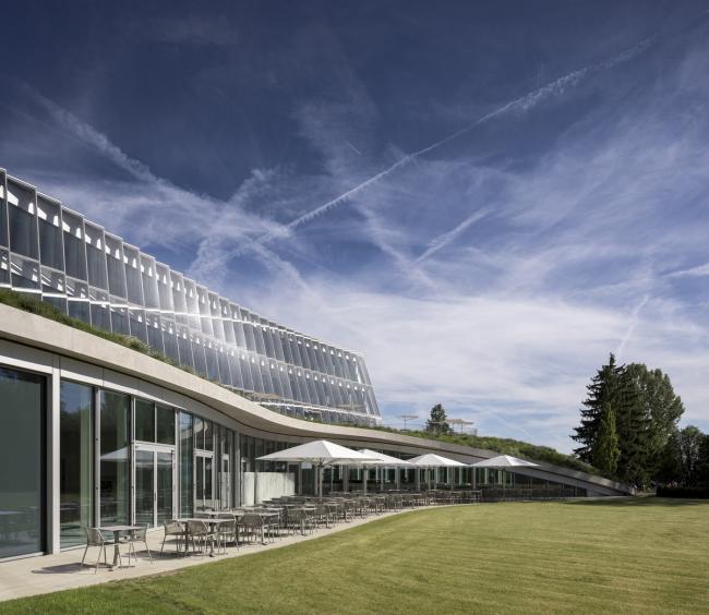 通过合并现有奥林匹克大厦和展馆的功能,新总部和周边景观将在园区内提供相同数量的绿地,同时将建筑面积增加一倍以上。设计融合了自然和景观,最大程度体现场地的美丽,利用不同尺度的植物元素创造了路径和观景点,同时保证维护当地生物多样性。植被覆盖的底层空间与景观巧妙地融为一体,最大限度减小建筑基底对环境的影响。
