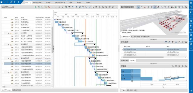 通过模型与施工组织条目和相关文档关联,既可以实现现场施工组织可视化交底,也实现施工组织可视化管理,快速生成4D模拟,以及平台提供的平衡作业线图功能,提前检查施工过程中资源调配的冲突。因为平台基于BS架构,可以通过移动端在现场录入完工进度数据,实现实时同步完工进度,优化管理。