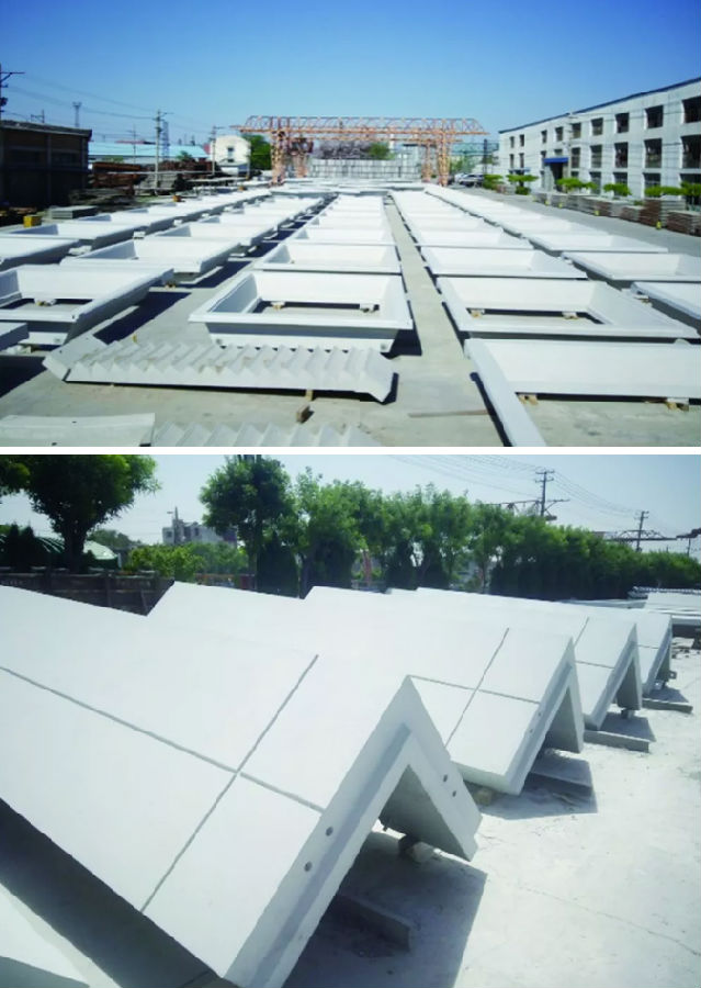 侧立生产,除顶面外其他面均与模具接触,外观效果明显,可大大提高预制构件的外观质量。