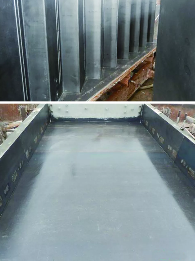 模具应具有足够的承载力、刚度和稳定性,以保证在构件生产时能确保承受浇筑混凝土的重量、侧压力及工作荷载。清水混凝土预制构件模具一般选用Q235钢板,表面氧化皮应致密、均匀、完整,钢板材料应表面平整,无扭曲变形、折叠死弯、划痕、锈蚀、斑痕、龟裂等缺陷。质量差的钢板在构件蒸养过程中会渗出氧化物,污染构件表面。相对来讲,我国武汉钢铁(集团)公司生产的钢板质量较好,适合做清水混凝土构件模具。
