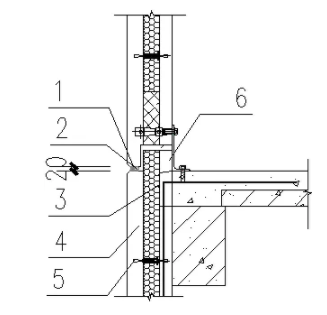 1-建筑密封胶;2-发泡聚乙烯棒;3-墙板槽口130*130*50;4-夹心三明治外挂板;5-玻璃纤维筋;6-企口