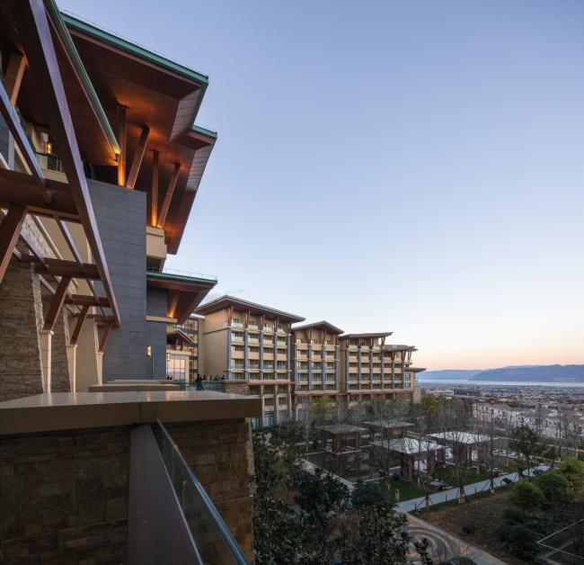 大理市是以白族为主体的少数民族聚居区,白族占当地人口的65%以上。作为第一个进驻大理的国际五星级度假酒店,酒店选址在大理苍山地质公园附近,布局在半山腰上,地处南诏古国最具鲜明特色的白族建筑群中。