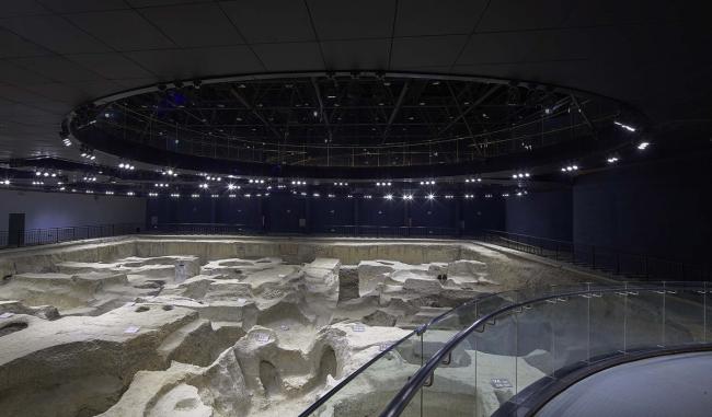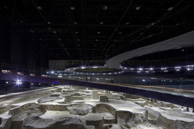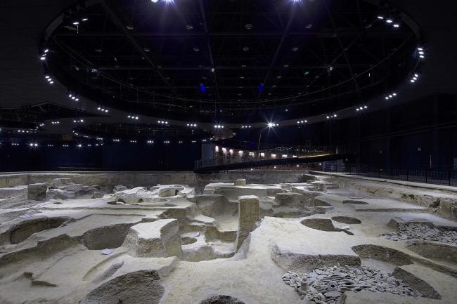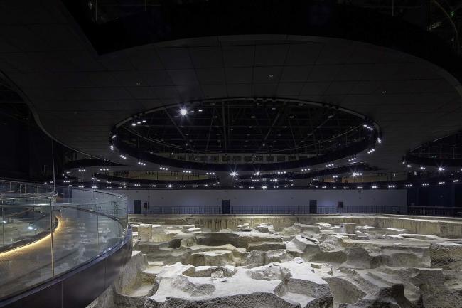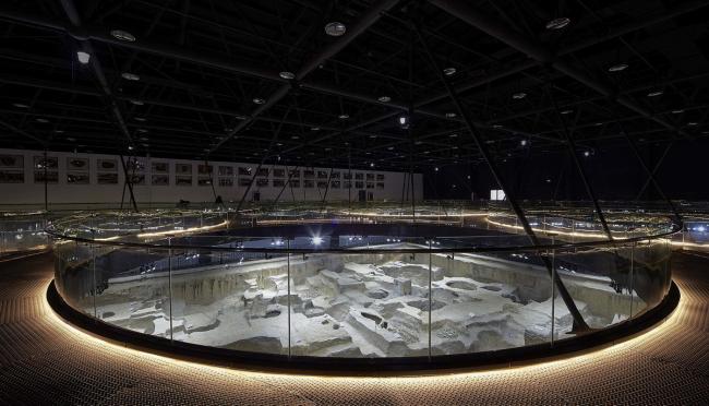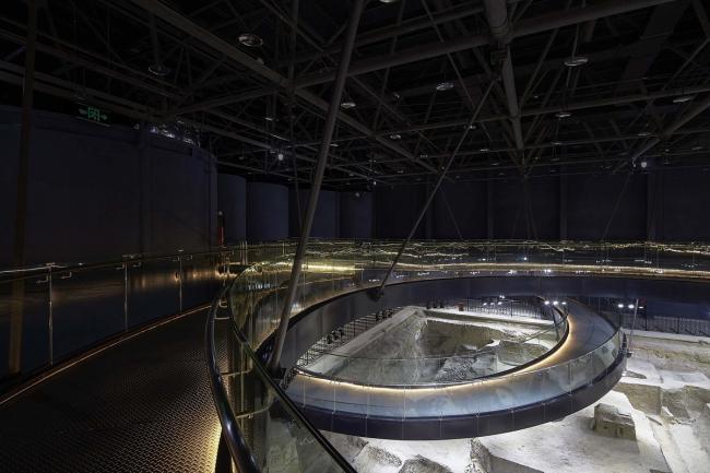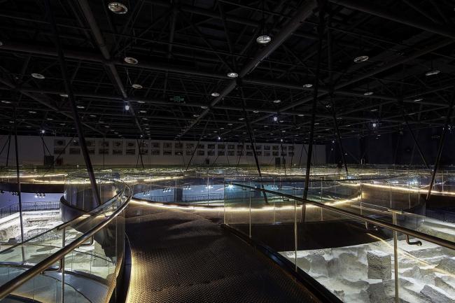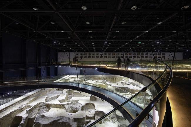 大小各异的参观环廊,与不规则形状的遗址坑形成了积极的互动关系。