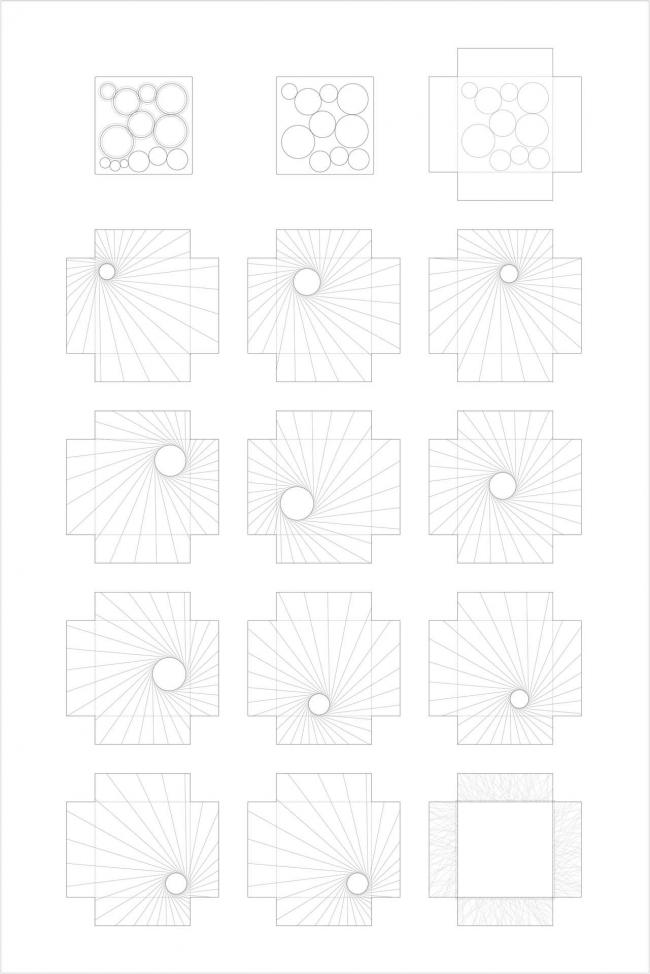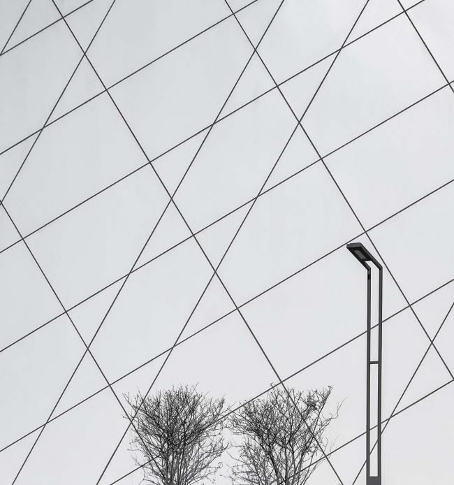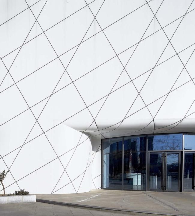 建筑外表的不规则板片划分,由每一个圆形按照同样规则沿切线发散交织而成。