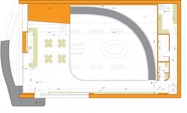 夹层的上方,也就是药店的二层,是一个多功能空间。平日里可以提供瑜伽相关的课程练习,以及戏剧方面的专题研讨会。这样的空间设置,对于一家药店来说,是极其特殊的。但建筑师却希望借此想法,来强化顾客的购物体验。日积月累,这个多功能空间甚至会演变成药店里的一个公共客厅。