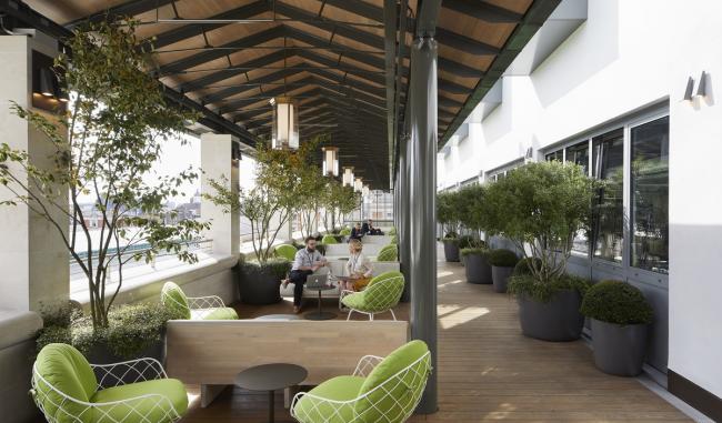 圆形剧场平台采用新的滑动玻璃和屋顶灯进行部分围合,形成一个全年可用的玻璃温室。站在露台上,人们不仅可以俯瞰广场,还可以一瞥包括服装部门在内的后台区域。