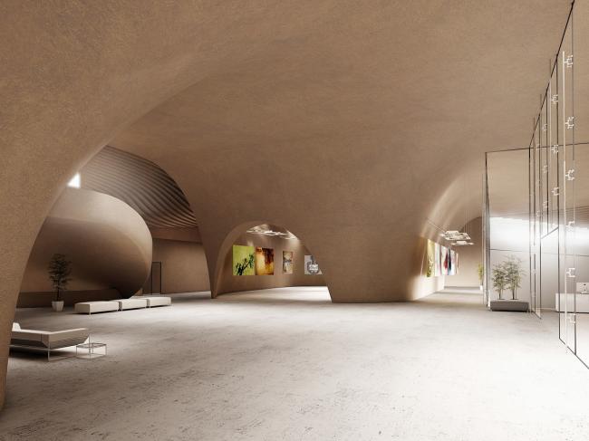 该(BIM建筑)建筑自身从根本上由三个核心所统一的结构定义,从地下室延伸到顶层。这些结构,包括了圆形剧场、教育区域和画廊,提供封闭且有限的空间,否则将会是流动且无限制的平面。因此,外部环境为艺术家提供了一个独特的空间,让他们能够与公园的常规使用者一起参与到公共活动中,而部分内部空间为建筑居民提供了一个更加私密、互动的类型。