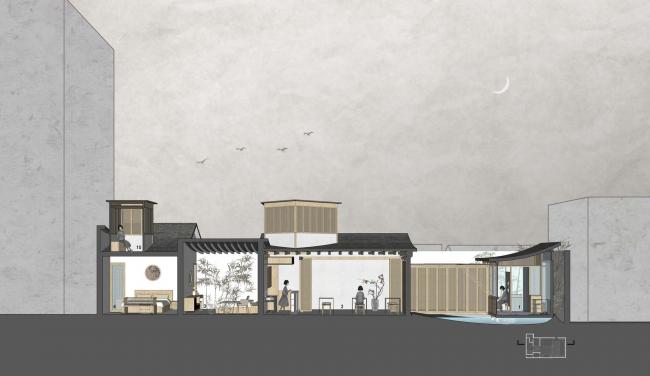 几次“进驻”的过程完成了画面到建造的转化。最终再通过功能的梳理,形成了公共和私密的两个区域:公共区域为提供给茶客品茗的东园,私密区为提供给住宿茶客和主人使用的西园。