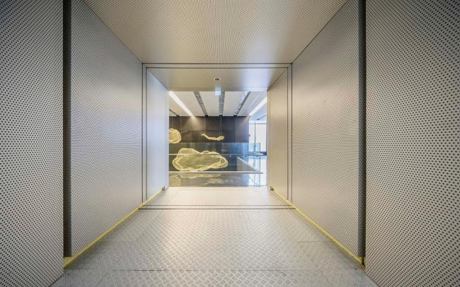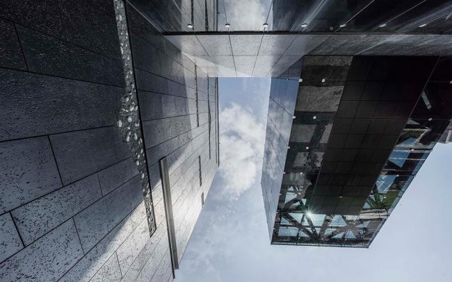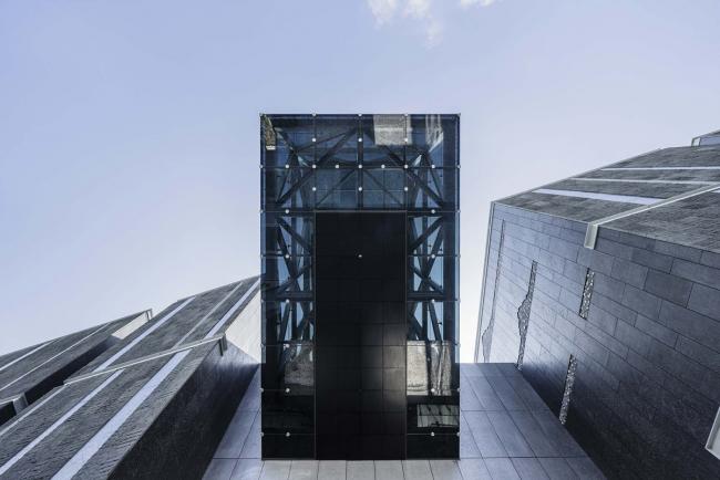 建筑以两组不同几何向度组成:一轴线指向近正北,与古代埋葬的方位吻合,代表过去的秩序;另一轴线遵循现有都市街道纹理,与主要轴线交错19度,代表现有的秩序。