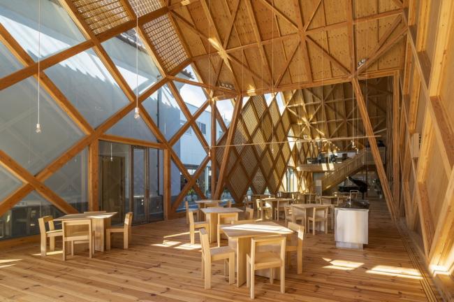 道路中轴线使用的地砖回收自旧吉野和服店。沿着街道的前面是大厅,其后方是吉野和服店家族捐赠的一架大钢琴。大厅内没有固定的座位,也没有任何声音控制设备。然而,从街道上可以很方便地进入内部,且大厅空间具有多种功能。从交响乐团音乐会到当地节日舞蹈的排练场所,大厅可以服务于城市公共生活的方方面面。这里是人们聚集的地方,是当地社区的新中心。