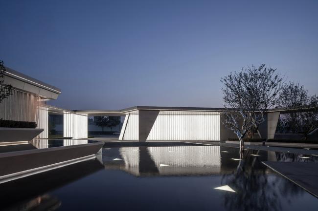 在铂悦 ·凤犀台生活艺术馆,建筑即景观的理念贯穿于设计的始终。庭院景观向室内渗透,而建筑体型延展至地面形成廊架,也成为景观的一部分。