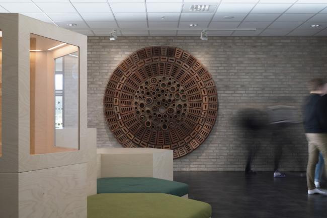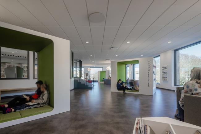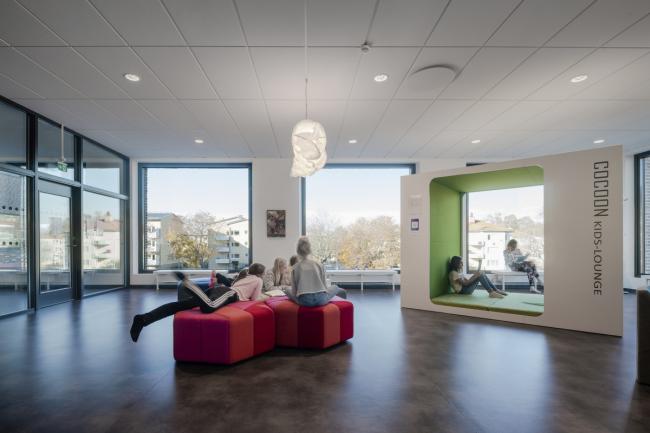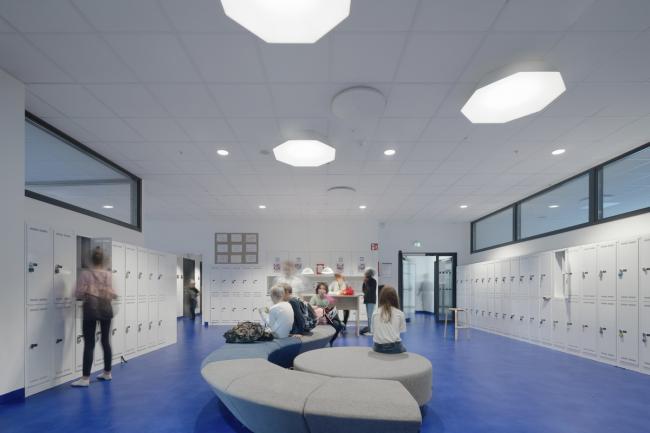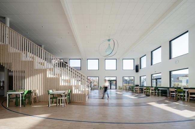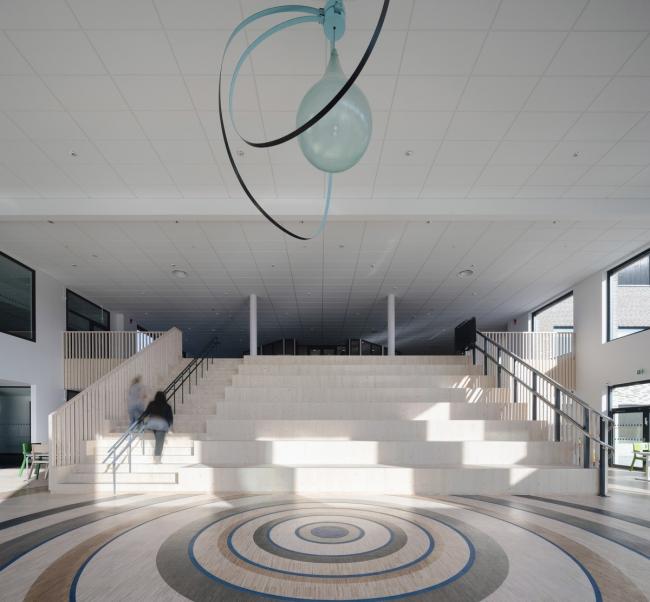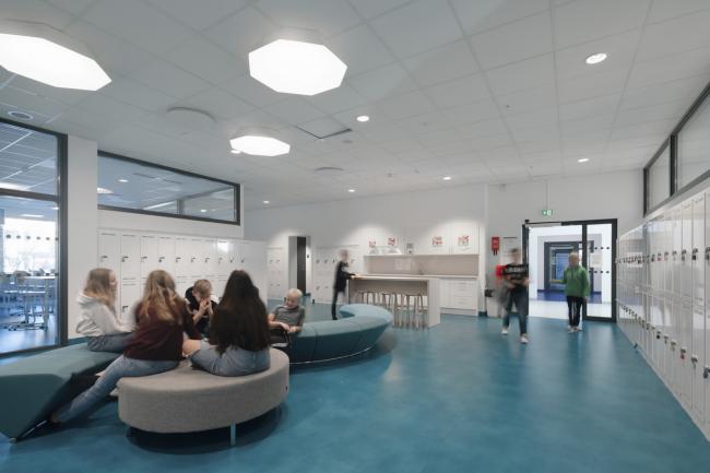 底层的公共空间将一小酒馆、广场、主楼梯和几个共享的学习场所组合在了一起。这为学校提供了充分的空间来培养社区意识和自豪感。C.F. Møller 建筑事务所与学校及建筑专家 Anna Törnqvist 合作,设计开发了一所能够提供灵活、不受未来影响的学习环境的学校。空间设计与传统组织结构的需求相匹配,但同时它也创造了新的机会,包括更多样化的工作方法和座位安排。