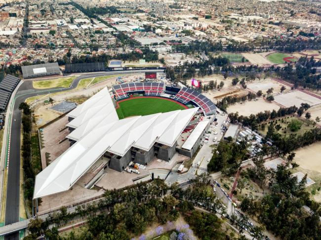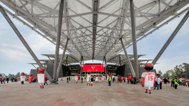 项目位于 Magdalene Mixhuca 体育中心的一级方程式赛道附近,在建筑工程和理论设计方面都涉及了现代和过去材料的融合,在尝试转变如今体育场范式的同时,参考墨西哥的历史和文化。该体育场的屋顶的建设其本身就是一项技术壮举,同时又参考其主队的拥有恶魔感的主队名称,以适宜的三叉戟的形态呈现。