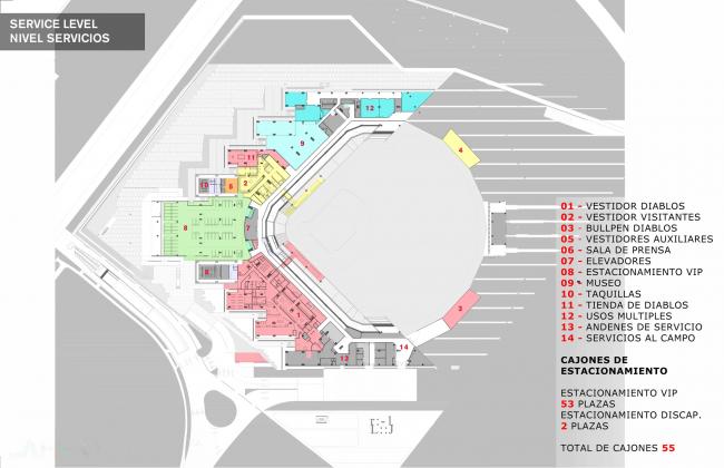 该体育场被称为 Diablos Rojos 体育场,是为了纪念主队之名,同时体育场馆展示了一种新的体育设施模式,即完美融合了文化,技术,并为社交活动提供了各种不同的途径,而这也是墨西哥文化中的一个重要因素。该体育场将不仅仅作为一个体育场,它还将成为墨西哥棒球的标志性建筑,同时作为当地社区的培训中心,社区市场还将为所有来这观看赛事的人们提供优质的座位。