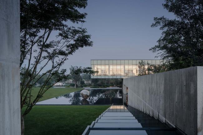 半透明玻璃体量的图书馆被高高架起,通过大尺度的悬挑,探向公园,从阅览室眺望中央公园有着极好的景致。各个盒子被墙与连廊串了起来,并形成了多重空间特性不同的院子。