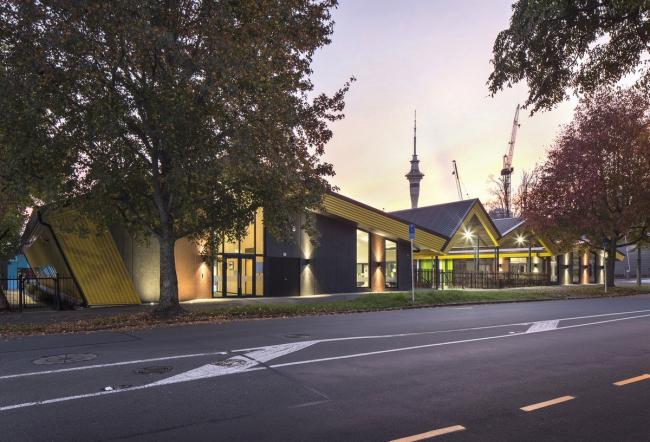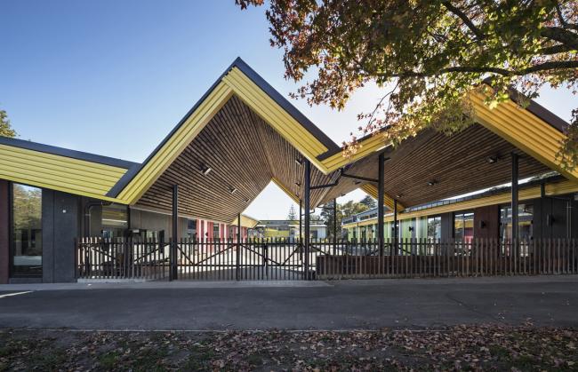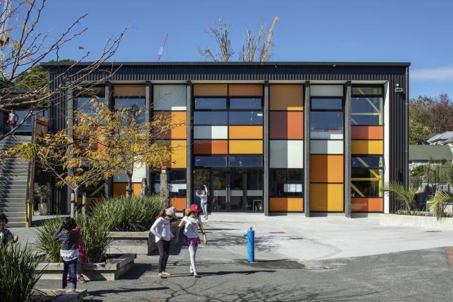 新的多功能大厅和管理中心面朝惠灵顿大街,连接着一个欢迎访客进入学校的入口雨蓬,其功能是作为潜在的室外教学空间以及覆盖顶的玩耍区域。脊线传达了传统的毛利建筑形式,同时可表现了多种周边街区典型的联排公寓和城镇房屋的屋顶形式。