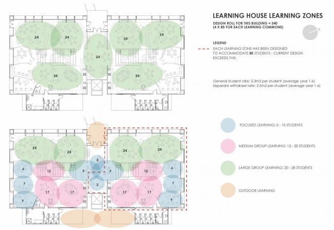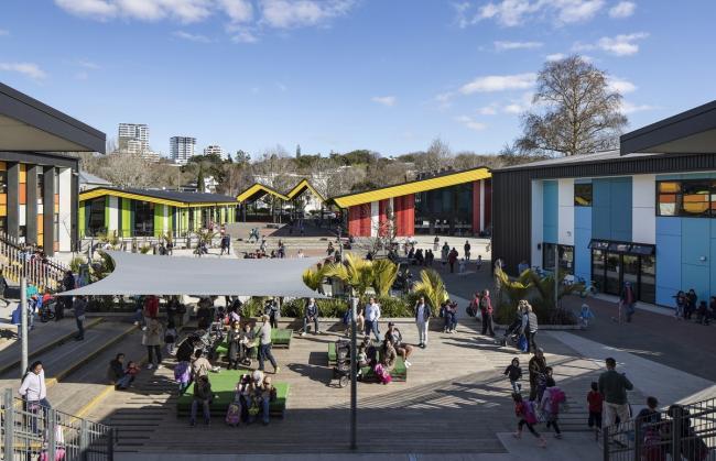新的学习中心位于东侧,在行政楼的后侧,朝向西北。这座新的图书馆建筑位于西侧大厅的后面,采用毛利族人中“大家庭”的概念。东北向有现存的学习大楼。这座建筑提供了先进的“创新式学习环境”(80-90名小朋友在一个开放空间布置的“教室”中学习),其提供了多种多样的建筑材料和技艺。灵活的教学空间适合展开多(BIM设计)样的教学活动,同时也适合多种科目与课程,既可以满足学校需求又可以满足社区群体的一些需求。