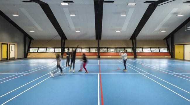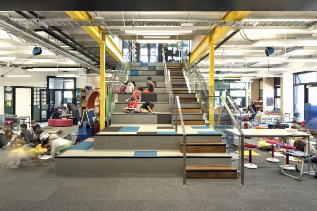 1960年代所建造到老校舍以及停车场设施被移走,使得一条路得以穿过新的入口雨蓬进入向新的中心庭院所开放的四栋新楼,这里非常适合进行社交活动和户外学习活动。建筑上充满活力而丰富的颜色代表了社区中多种多样的文化以及儿童们不同的种族背景。