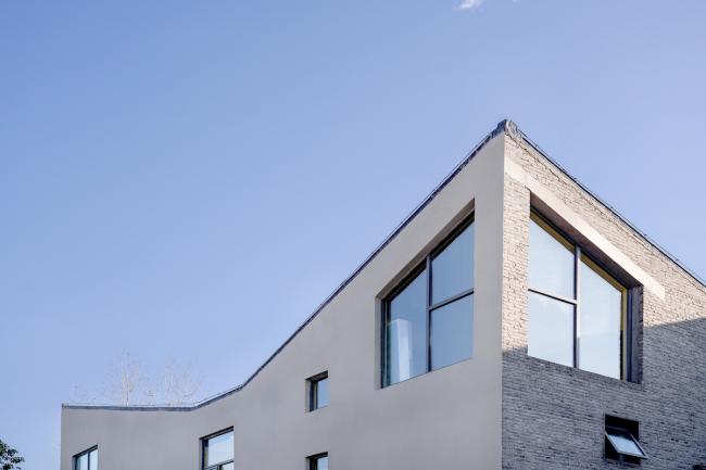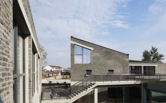 建筑风格尊重和延续了苏中传统,和当地民居呼应,并依各栋建筑的体量大小有所变型。建筑立面上,内庭的墙面主要由青砖砌成,外墙则一律是白色灰泥,在纷乱的县城环境里脱颖而出,为孩子的世界(BIM建筑)保持一份纯净。立面上大小、高低不等的开窗,在保证日照的同时也形成通透、有趣的室内外关系。