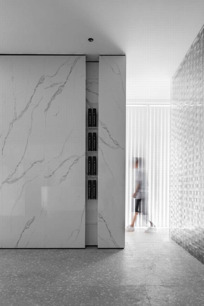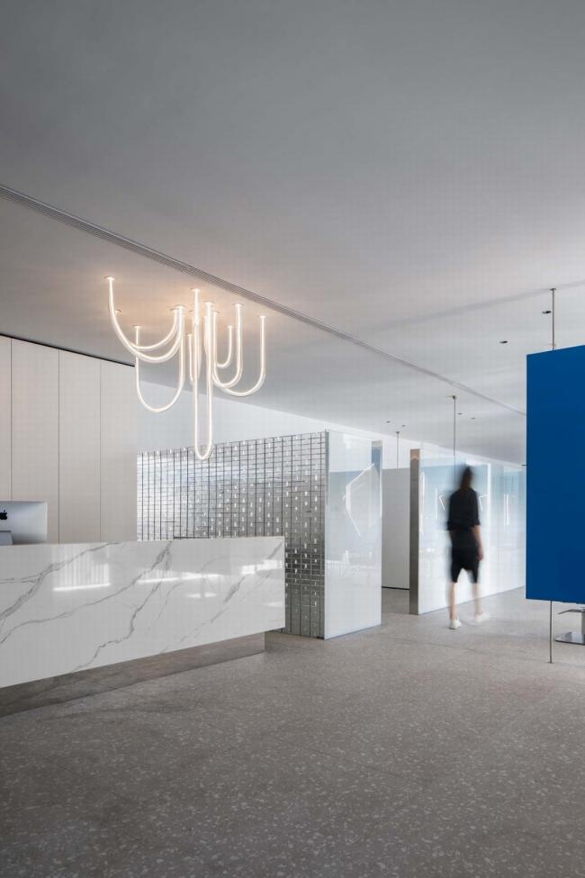 设计师以“见与不见”作为思考原点,在井然有序的空间中,巧妙运用时间上的错位感,创造人与人、人与空间、空间与空间的隔离与交叉感,用创(BIM建筑)意营造出戏剧化冲突的空间褶皱,形成了更富有韵律和耐人寻味的故事脉络。