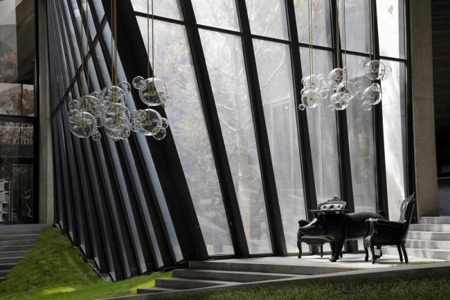 在内部,所有的功能都被安排在一个连续的无障碍的空间,玻璃隔断作为之间的边界。