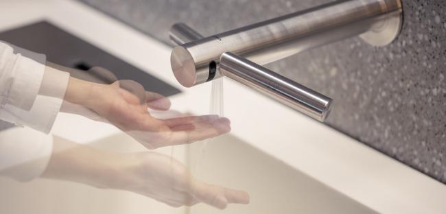 咖啡空间整体高于走廊空间15C M,所以进入时会有一级的踏步,门拉手设计了不同的高度,尽量完善不同身高的习惯使用尺度,将拉手的圆柱体单斜面切割出一个平面,也减少了人们手拿饮品开门时容易脱手的几率。