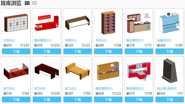 5、搜索需要的族,可以直接下载到revit中使用。