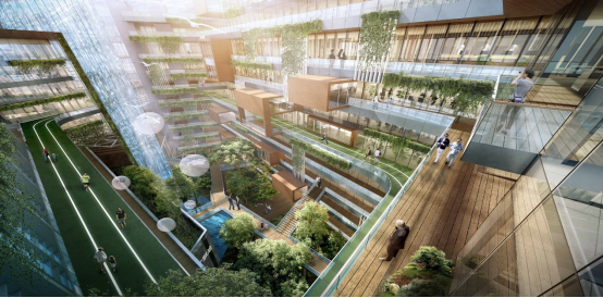 该项目进行之处即确定从方案、初设、施工图、深化、优化的一体化设计、数字化设计、可视化设计、在线化设计,多种设计方法的实践,保证项目顺利落地。项目采用物联网和人工智能技术集数字化、智能化于一体。大厦将成为探索物联网解决方案和人工智能的“超级试验场”。利用现代技术,自制能源,减少不可再生能源的消耗,控制碳排放量,打造绿色建筑。