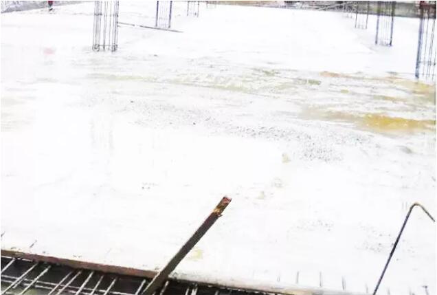 混凝土浇筑应从墙板开始,分层浇筑,每层浇筑高度不大于80cm,间隔时间一般不小于1小时。