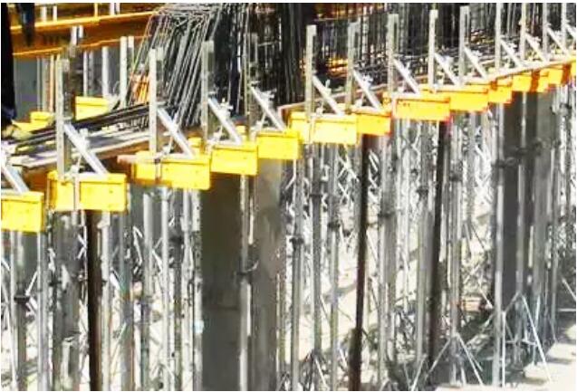 叠合墙板安装完成后,即可进行现浇框架柱施工,包括钢筋绑扎、支模、混凝土浇筑、拆模等。