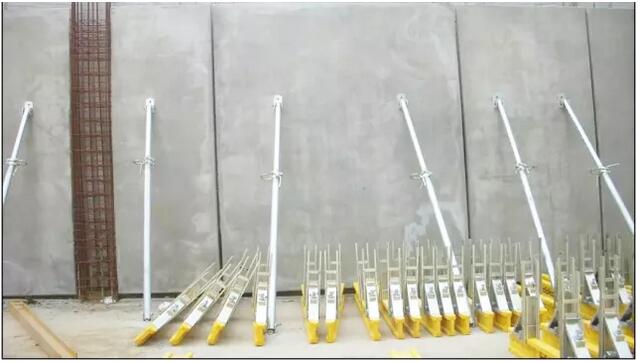 叠合墙板应按要求进行吊装,每块墙板用两根斜支撑固定和调整。