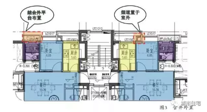 将设备管井置于建筑外部,更有利于大空间建筑分隔的灵活性。同时,设备管井外置还可节约套内空间,也便于二次装修改造,而管井外置设计时需要结合建筑专业,对建筑立面进行统一协调处理(见图3)。