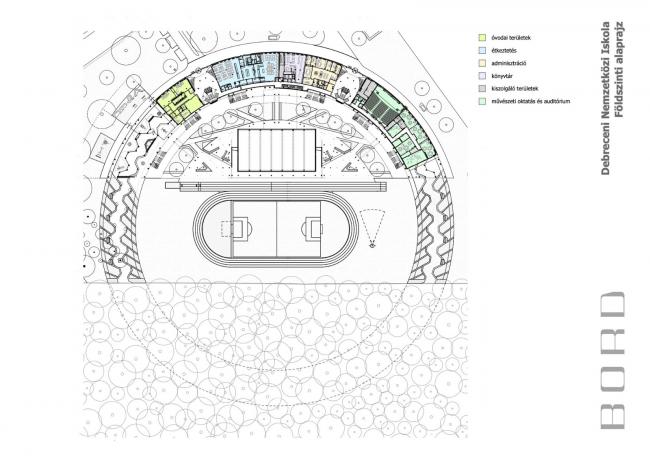 我们对德布勒森国际学校的设计概念是以圆形为基础的。这个简单而具有象征性的形状在传统上意味着保护、团结和社区,然而它却轻轻地融入进附近的受保护的自然森林“Nagyerdő”地区。