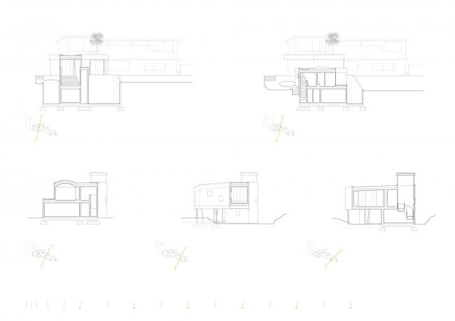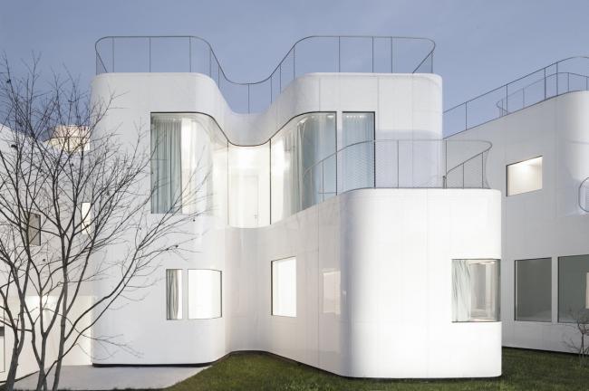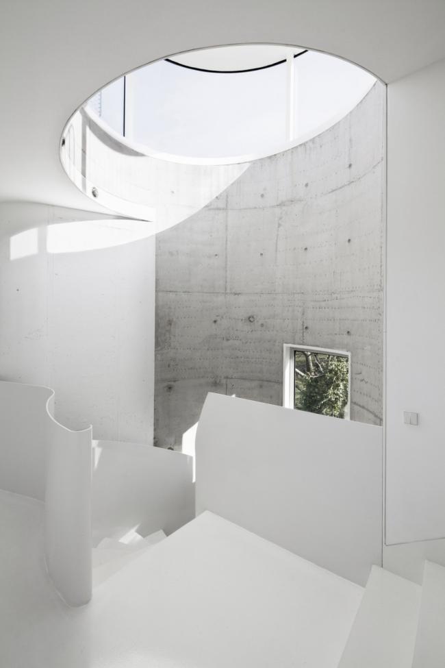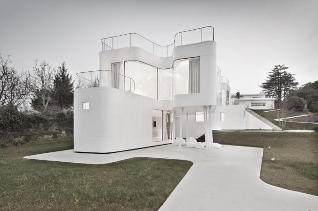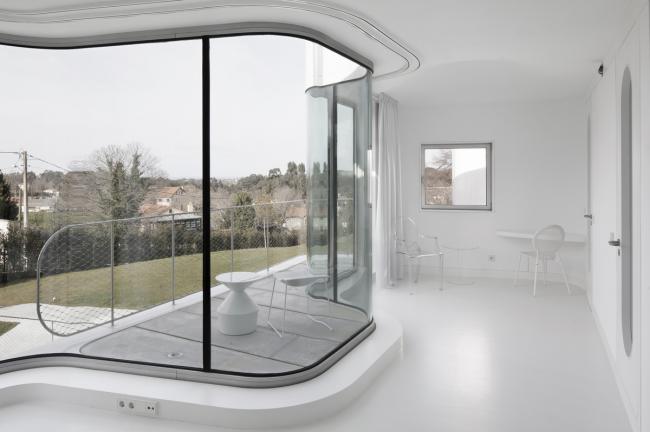 原有房子用于充当家庭空间和社交互动空间,以及第一代房主的卧室。每个家庭成员都有其各自的独立性,同时也保证了与其他家人有交流的空间。一面独立设计的多层墙壁,既是构造的一部分,也是保温隔热、与户外环境隔离的隔离层,外形的蜿蜒曲折,保证了家里各种各样的活动。空间是由时空的延展来定义的,时空中的物质在拓扑方面适应其内部发生的一切。新房子的外形是一套连续而完整的中性包装,没有棱角,没有颜色,没有纹理,在这个包装中,生活与行为是主角。