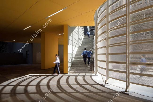 这个项目意图颠覆打破传统学校的设计方式,不再将校园单纯的划分为建筑区和功能区,而是通过一系列剖面上的空间组织使得每个教室都能最大化的接触阳光和绿荫。这种策略强化出了一种错落叠加的竖向空间组织,借此生成了无止境的剖面多样性。自上而下的自然光形成了一系列的“垂直光井”,为内部的教学、游嬉、创作和互动等活动打造了极其丰富的空间形态。