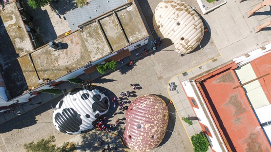 诺贝托-米兰达和建筑公司Estudio3.14工作室为一个名为“肥沃的土地”(Fertile Land)的巡回展览创造了这些建筑。这种充气设计意味着建筑可以很容易地移动。