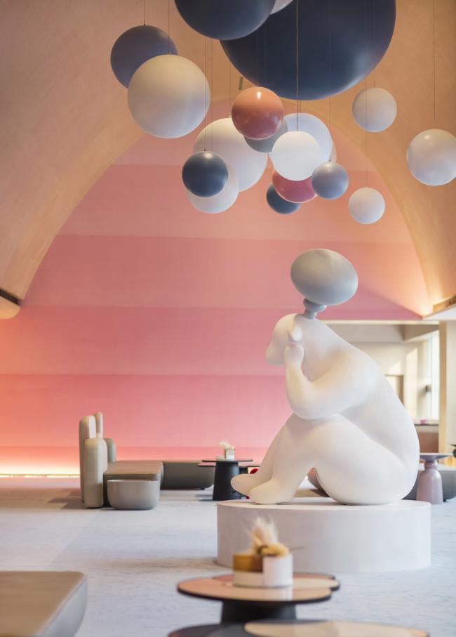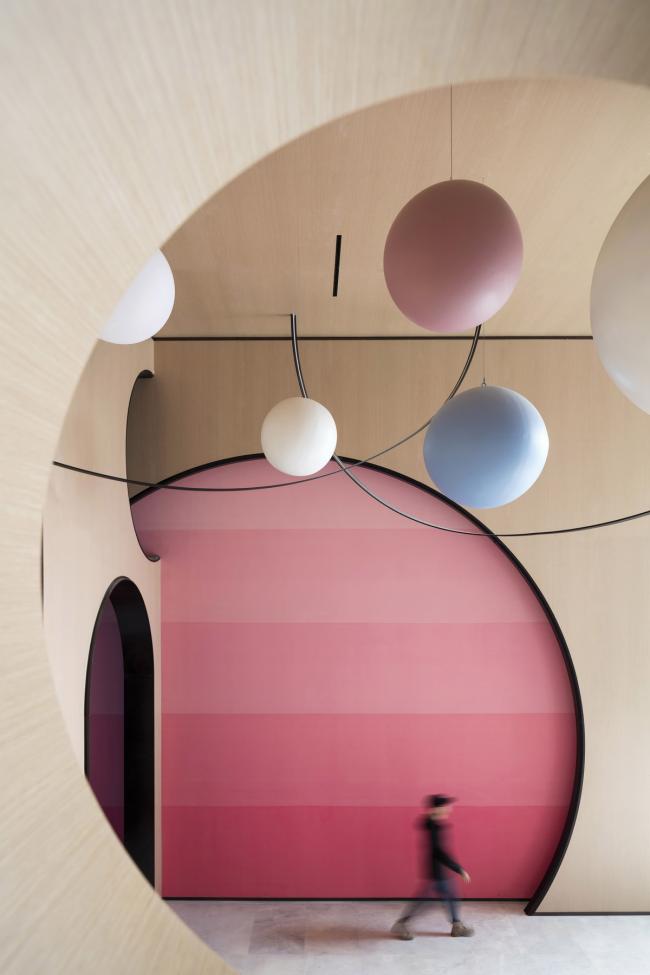 建筑室内设计则主要采用了温暖柔和的糖果色系,结合圆弧的造型营造出了具有安全感的温馨氛围。纤细而不失大胆的造型也能更好地迎合孩子们对世界的各种可爱想象。