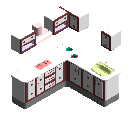 水龙头材质梨子材质果盘材质灶台材质完成油烟机材质红苹果材质灶底材质底板材质拉手材质前柜壁材质水果把材质玻璃材质后柜壁材质洗手池材质桌面材质青苹果材质开关材质