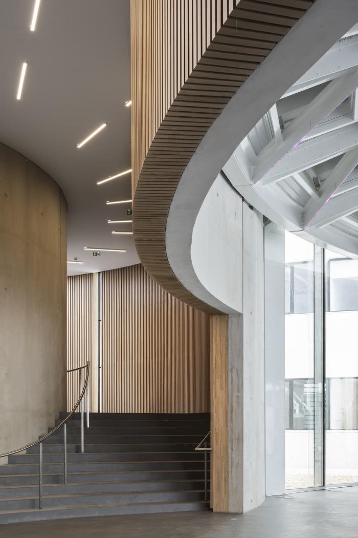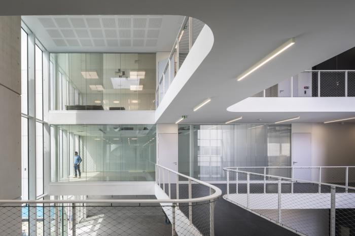 委托人展现了其对建筑能源和环境绩效的承诺。该建筑的透明性表达了“基础材料”的气体流动性,也反映出其不妨碍地球运转的愿景。此外,该建筑还以氢的形式存储光伏板产生的能量,这在法国尚属首次。中心从内部获取资源,甚至包括在现场流通的氢燃料汽车。