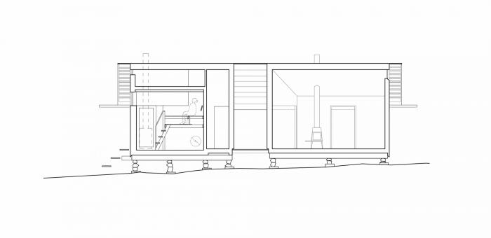 这间桑拿旅馆位于埃斯波群岛(Espoo archipelago)其中一个岩石岛的北岸。这间小小的旅馆被建筑师分为两个部分设计。其中一部分是一间桑拿房,而另一部分则是可供游客休憩的旅馆空间,同时也承担着桑拿房更衣间的空间功能。