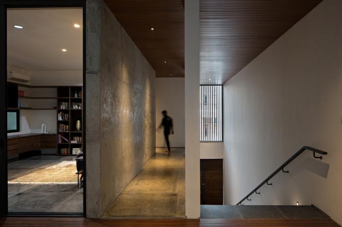 本项目对于环境的考虑也体现在房屋的材料上。例如,选用现浇混凝土和大理石使房子内部保持凉爽感,使内部天井隔绝恶劣的雅加达热气。户外所有的木质细节都选用了乌林木,因为它在充满挑战的热带气候中具有极好的弹性。因此,选材超越美学上的考虑,进一步强化了房屋所设定的尽可能减少维护和总体能耗的设计目标。
