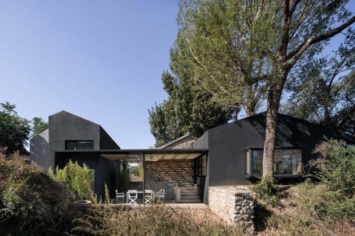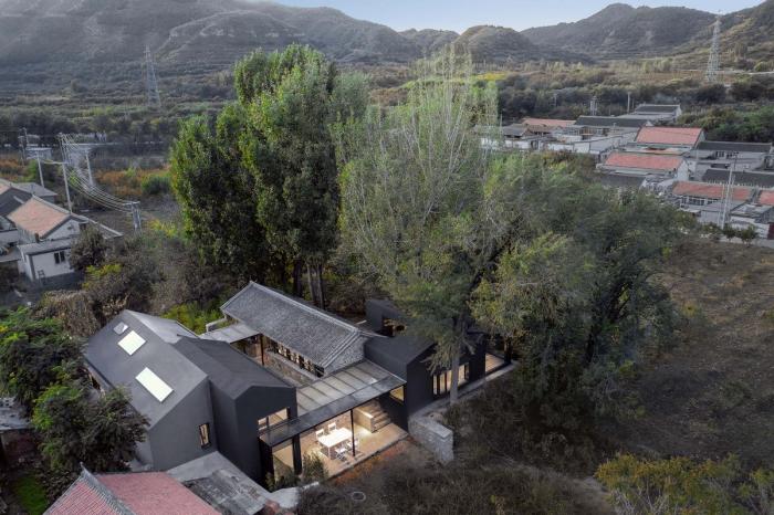 “树下院”林立于一片白杨树之下,核桃树与一大片菜地之间。显著的场地特征是项目命名的起源。我们希望创造一个开朗的院子,把周围的树木、山峦以及使用者的各项活动都容纳其间。