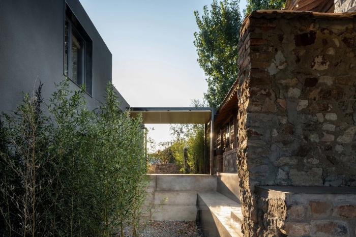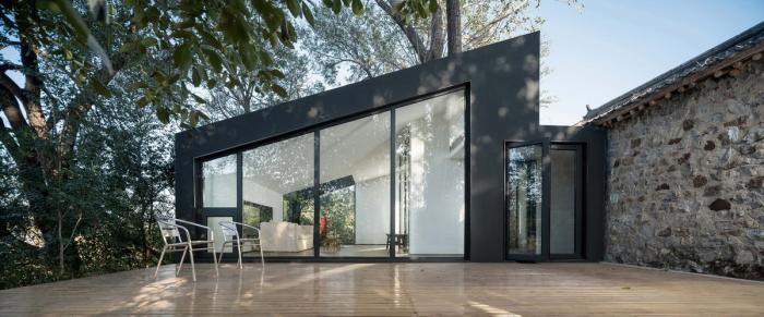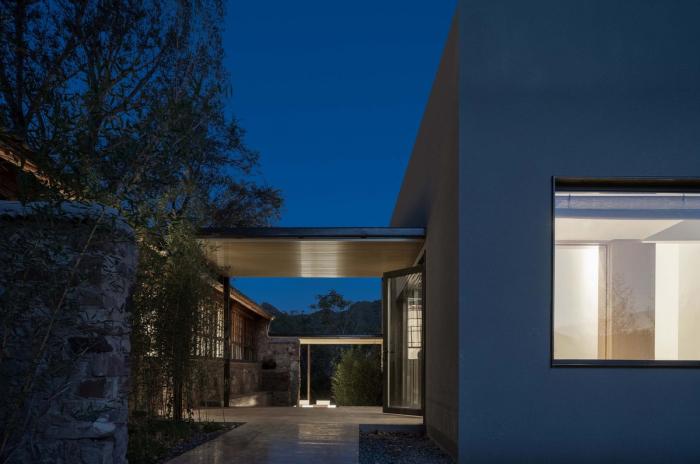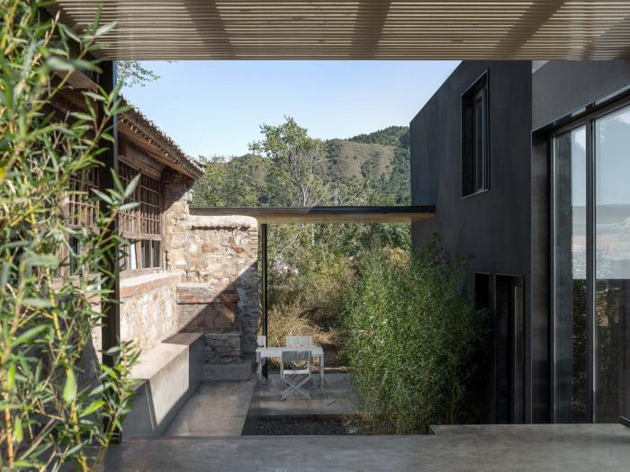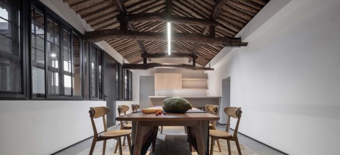 如何对待传统建筑一直是乡建项目的重要问题。作为曾经的农业大国,中国文化的乡愁浓缩于乡村,“原汁原味”固然延续记忆,却存在着种种问题:传统的建造材料与结构形式使房屋的开窗面积受到严重限制,降低了室内的采光舒适度;面向乡野而来的都市客们既向往传统的生活方式,又希望享受到现代化的便利,他们的体验式居住状态与村落原住民大不相同。我们不赞成“反现代”的表演,也认可共同记忆与情感的价值。于是,我们以老房子作为空间的核心,用象征性的符号来满足访客对“原生态”的向往。