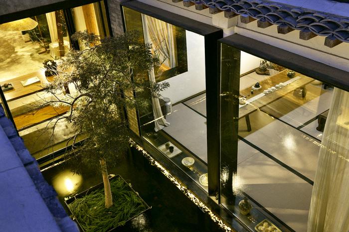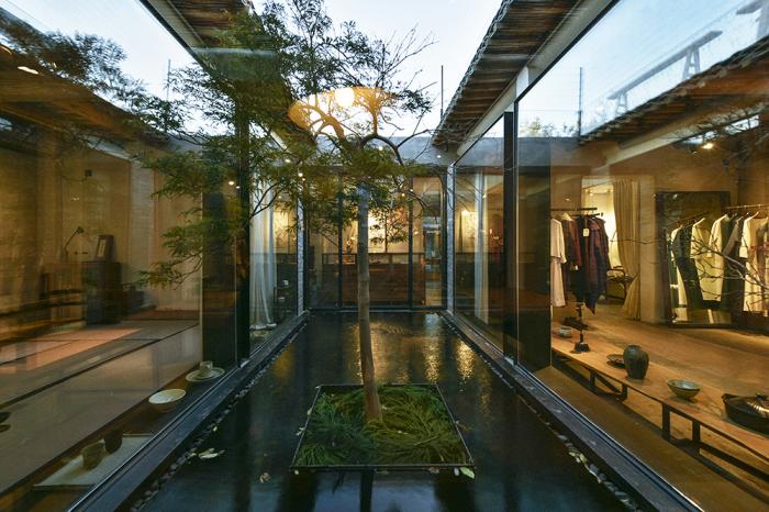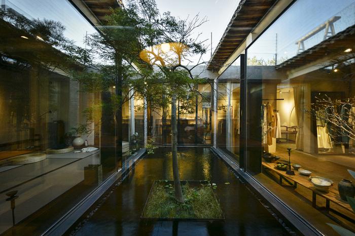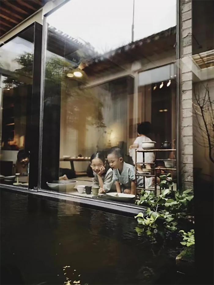 “水月”一名,来自店中的一汪池水,饱有四水归堂的意境。如遇雨水,雨滴顺屋檐倾落,池子收集并圈住这汪生命之源,亦有生生不息的期许。