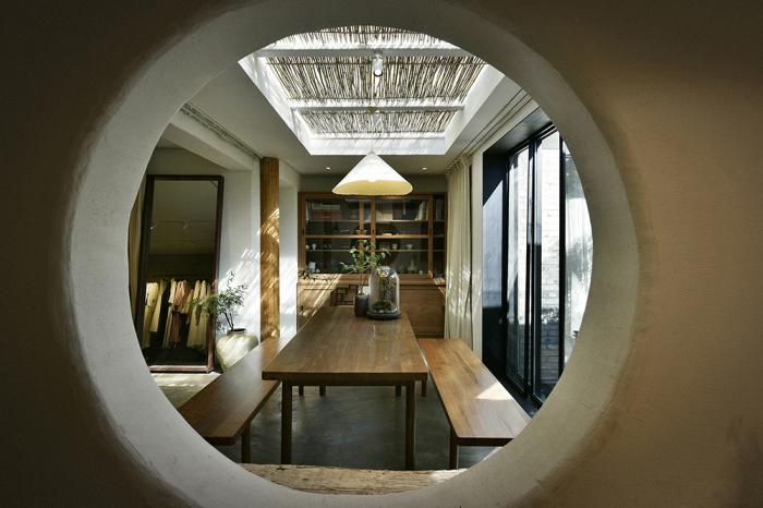 漫步在五道营,一家名为“那曲水月”的服装店与其它众多的店铺、咖啡馆等一同驻守在这条街的嘈杂声里。作为这条胡同里开设的第二家那曲店铺,店主咪娜请来老友——室内建筑师王大泉,再次为其服装品牌度身定制专属空间。王大泉本着对传统文化的独到见解,以四重要素交叠的形式着眼于过去和当下,最终让烙印着历史脉络的水月店铺,成为一面观察城市百态的小小窗口。