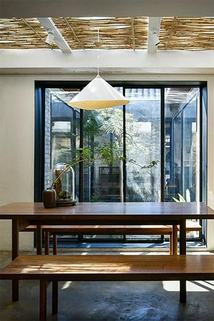 完整保留的房梁撑起空间的精气神儿,轻微包裹的色浆为它的灵魂铺陈了朴素的底色。