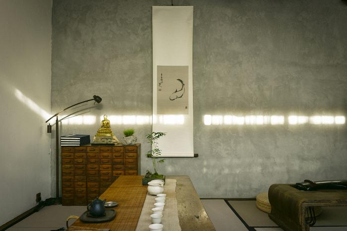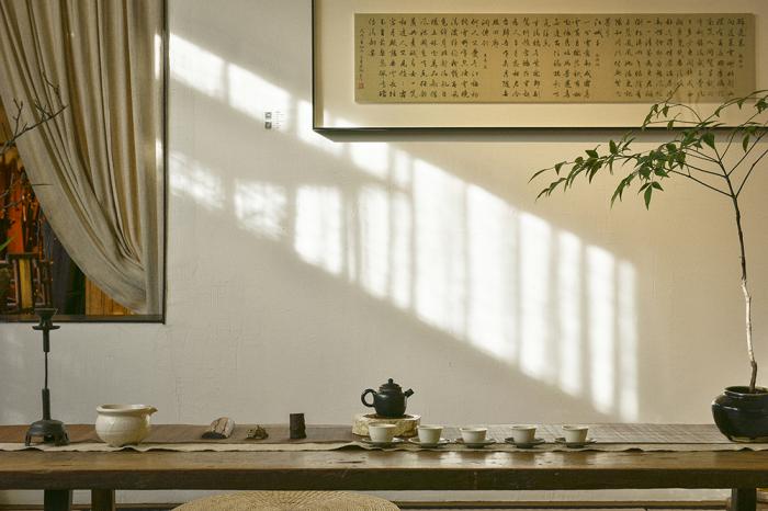 让自我潜藏雨环境之中,抚琴弄茶。事物清晰地呈现在眼前,而又隐约在光线之中。