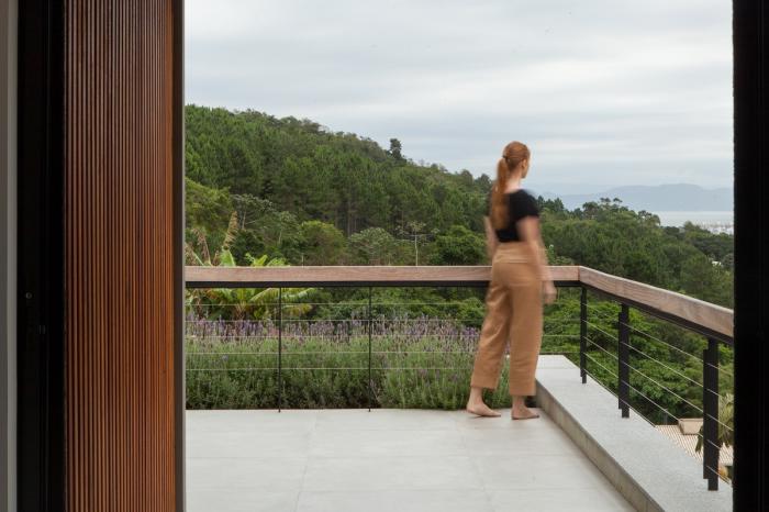 建筑体量是线性的,以轻透的结构和露台开口为特征。